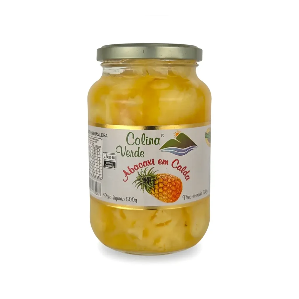 Produzido de forma artesanal no interior do Rio Grande do Sul, o abacaxi em calda colina verde é feito com frutas selecionadas, resultando em um sabor doce e textura perfeita.
