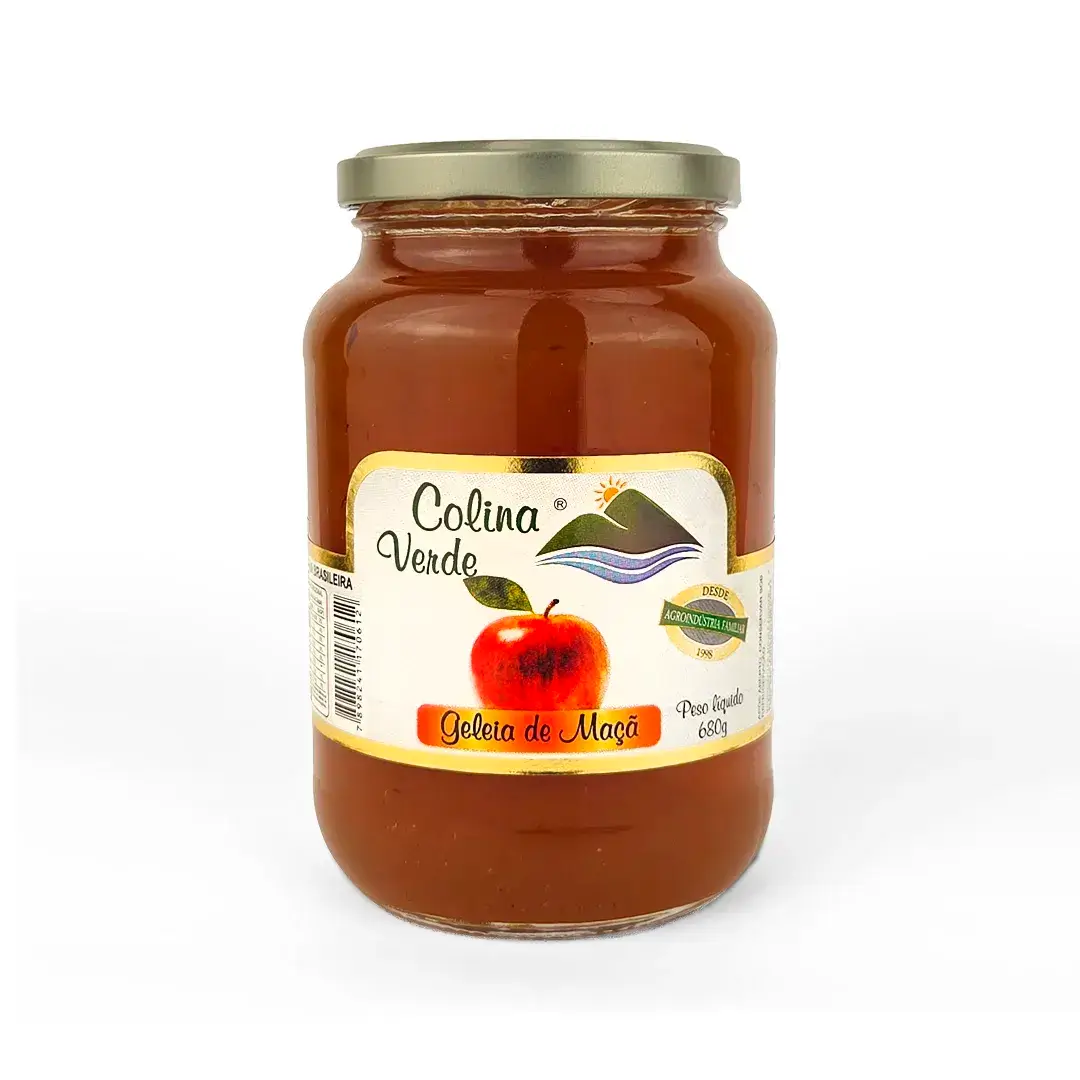 A Geleia de Maçã - Colina Verde é produzida com ingredientes selecionados e preparo tradicional, preservando o sabor natural da fruta e a textura característica de uma geleia caseira.