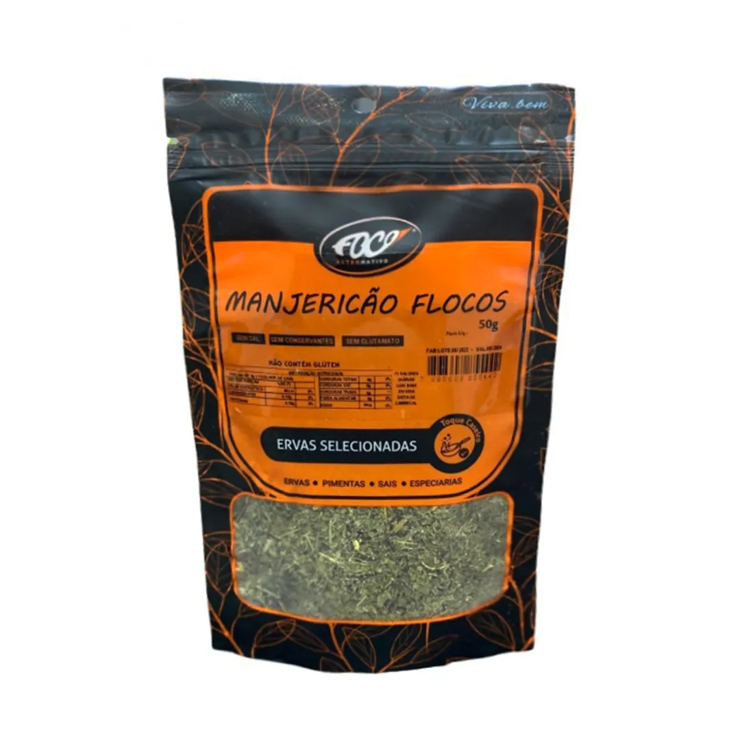 Manjericão Flocos Pacote, 50g - Foco Alternativo