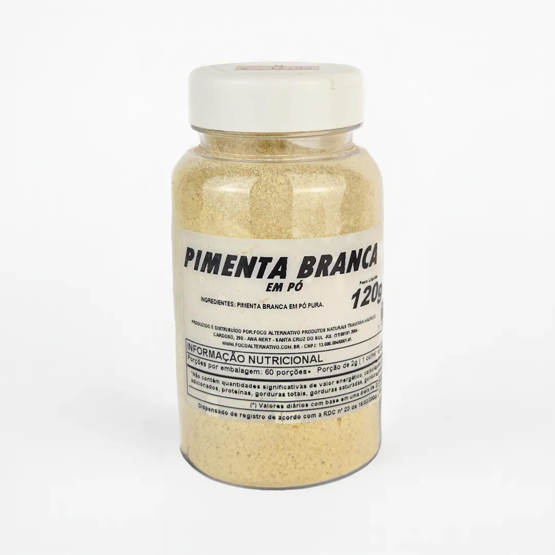 Pimenta Branca em Pó Pote, 120g - Foco Alternativo